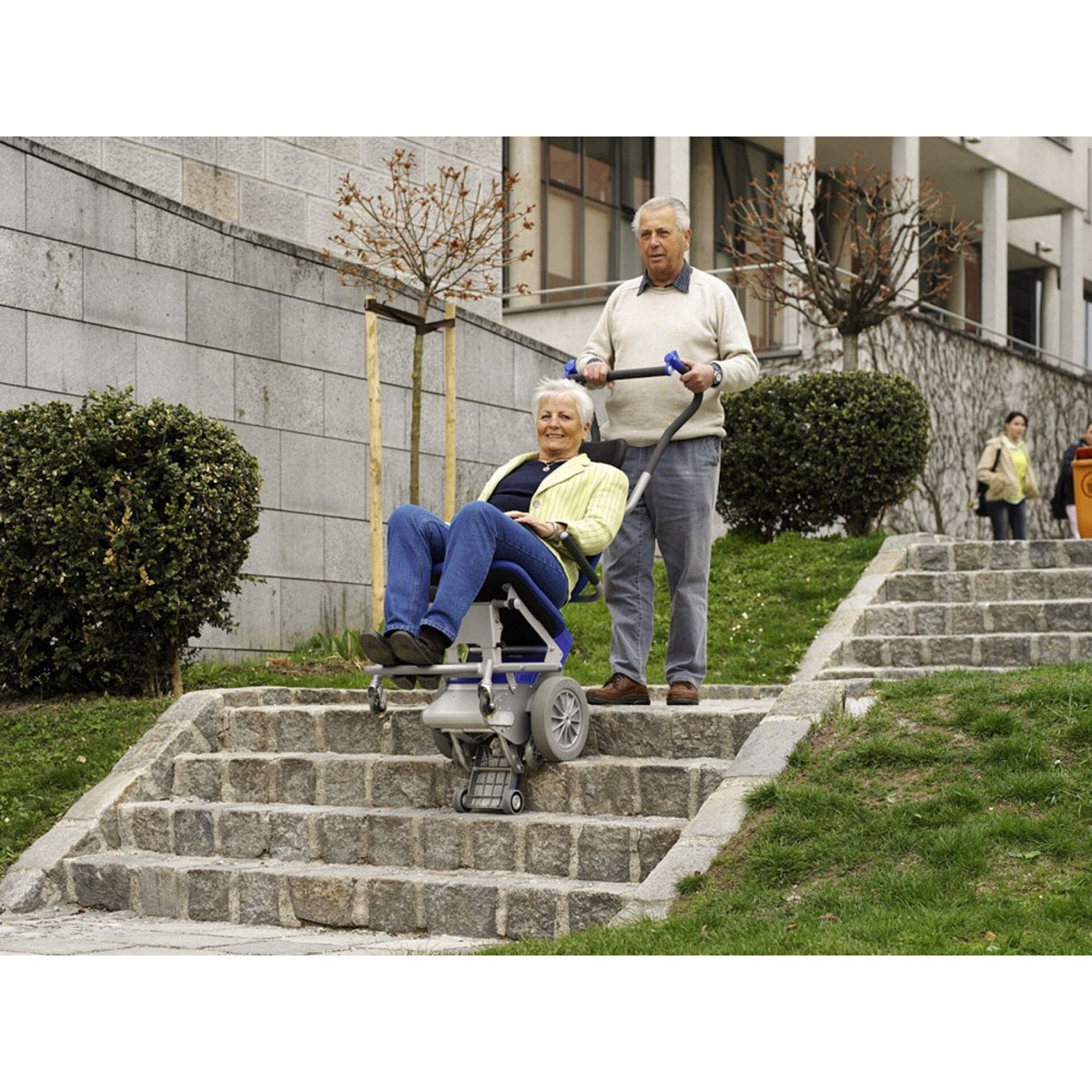 Эргономичное анатомическое сиденье и мягкие подлокотники обеспечивают комфорт во время движения. Подъёмник работает бесшумно, плавно трогается и останавливается, не создавая вибраций. Управление остаётся простым и интуитивным — сопровождающий контролирует все функции без лишних усилий. Компактная складная конструкция позволяет перевозить устройство в автомобиле и использовать его в любых поездках.