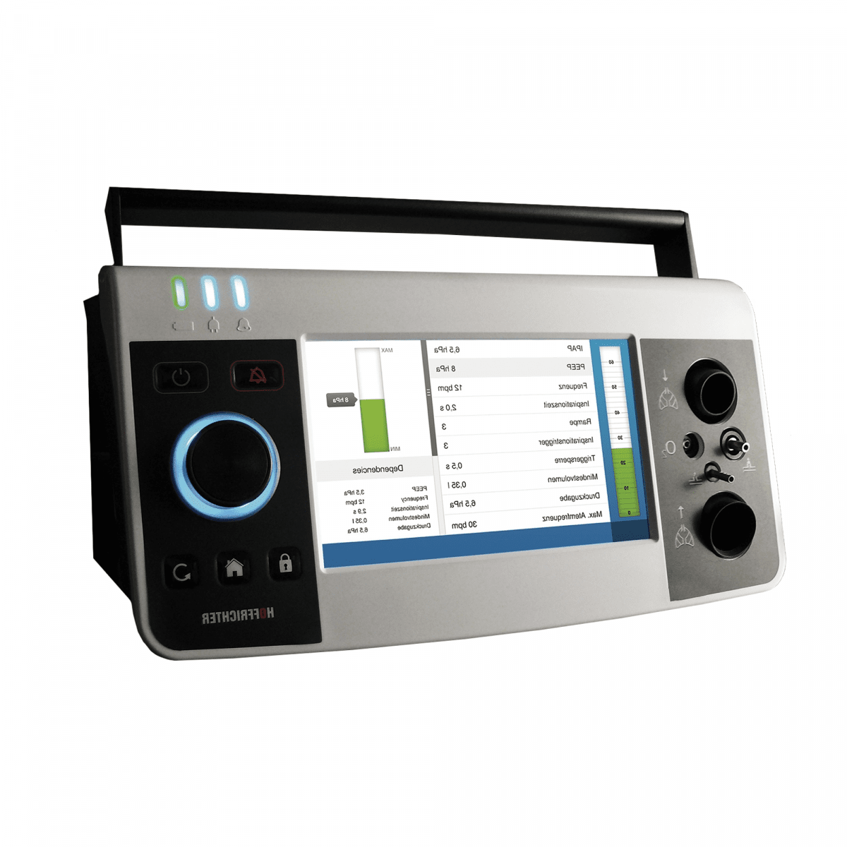 Hoffrichter Carat II Pro (Хоффрихтер Карат 2 Про) — профессиональный аппарат для респираторной поддержки, который используется в больницах, реанимациях, реабилитационных центрах и может применяться дома для длительной терапии. Он поддерживает как инвазивную, так и неинвазивную вентиляцию, обеспечивая стабильное и безопасное дыхание при состояниях любой сложности.