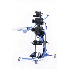 Особенностью вертикализатора является уникальная система изолированного разведения ног, обеспечивающая коррекцию положения каждой конечности до 30°. Это делает ЭкзоСтенд незаменимым при работе с дисплазией тазобедренных суставов и другими ортопедическими нарушениями. Конструкция сочетает надёжность, точную настройку и комфорт для пользователя, обеспечивая эффективную реабилитацию.