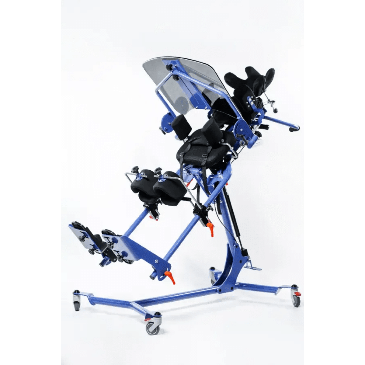 Экзо-технологии Экзостенд+ заднеопорный — профессиональный вертикализатор для безопасной и постепенной адаптации к вертикальному положению детей с тяжёлыми двигательными нарушениями. Устройство обеспечивает максимальную поддержку благодаря задней опоре туловища, позволяя начать реабилитацию даже при сложных нарушениях. Плавная регулировка угла наклона позволяет мягко переходить от горизонтального к вертикальному положению, минимизируя нагрузку на организм.