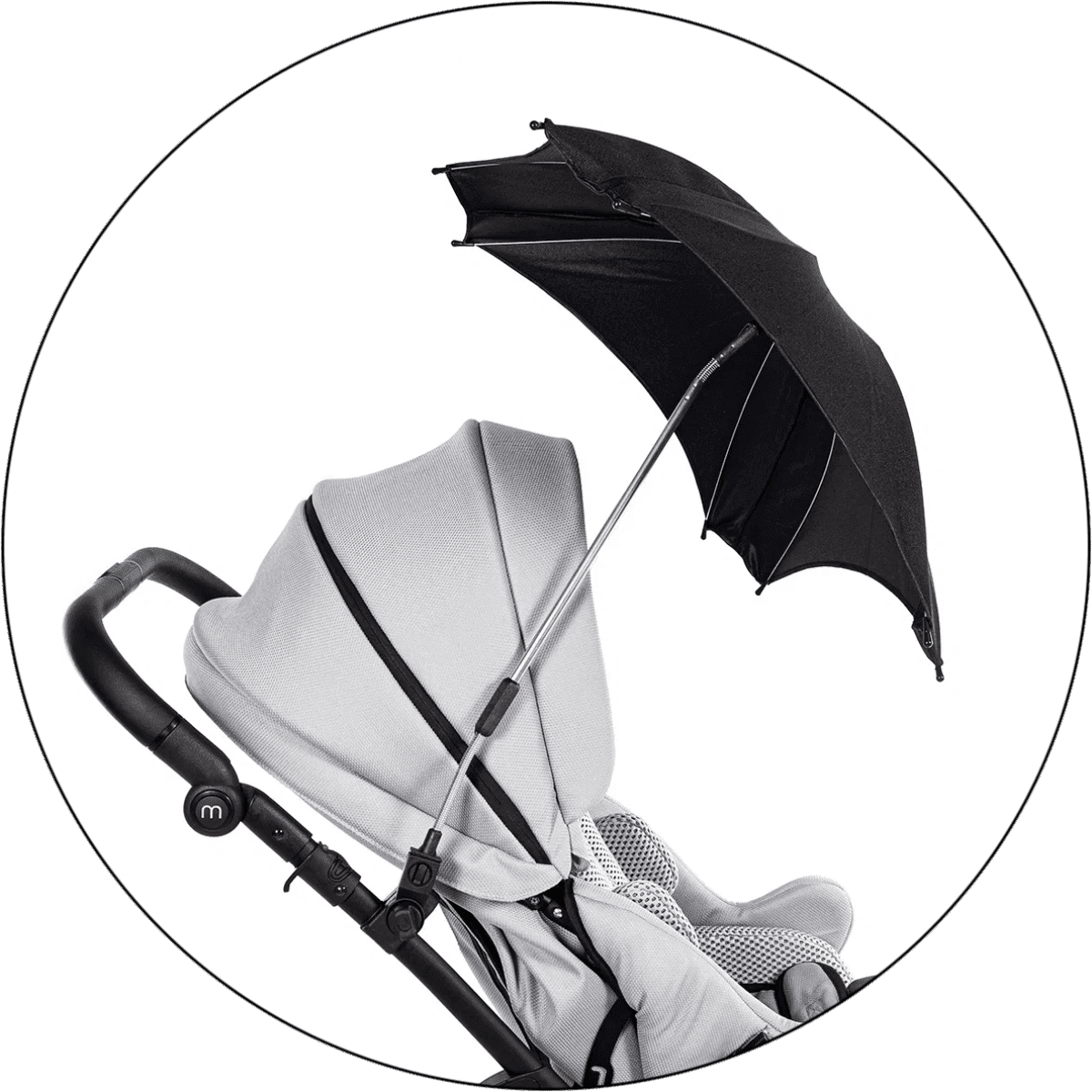 Зонтик для MyWam Mewa — дополнительная опция для защиты ребёнка от солнца и осадков во время прогулок. Помогает создать комфортные условия в любую погоду. Легко крепится к коляске и регулируется по положению.