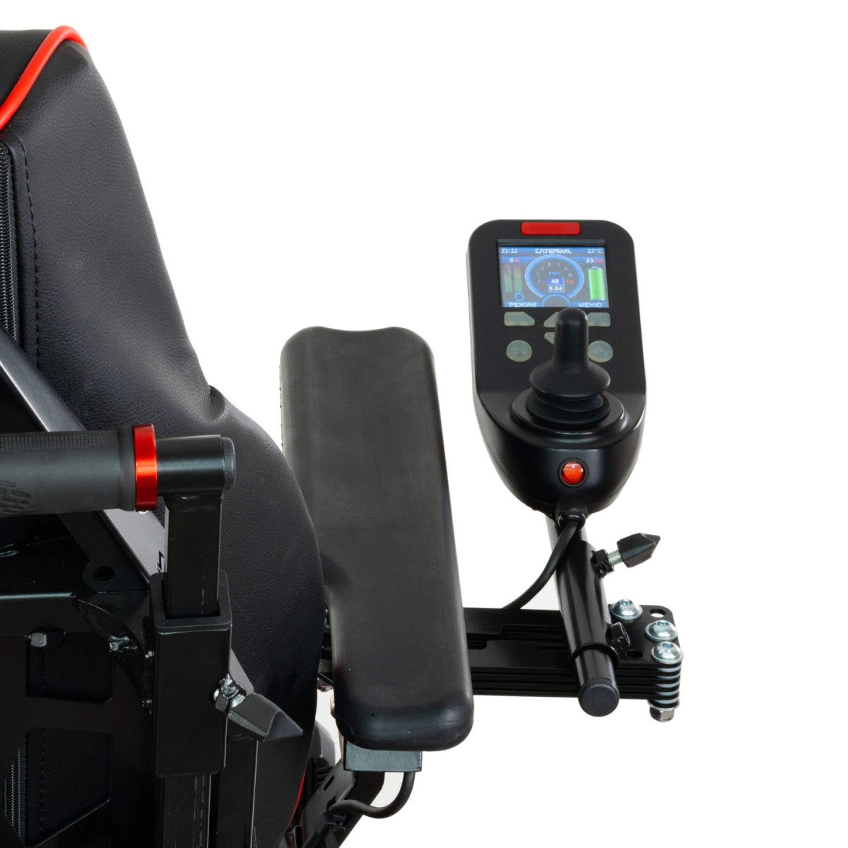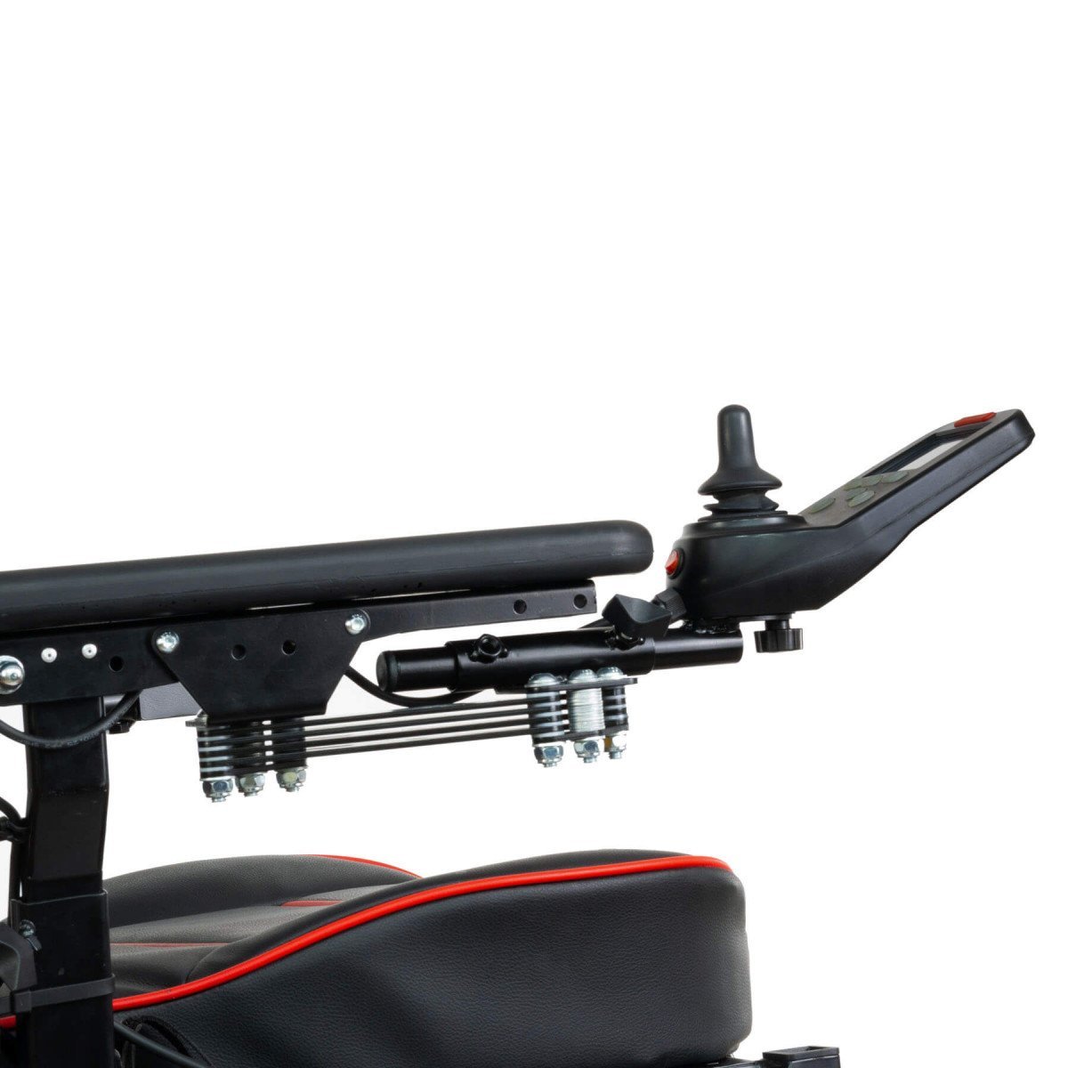 Механизм отведения пульта в сторону может быть очень полезным для близкого подъезда к столу. Также механизм может помочь людям с особенностями кисти, когда расположение пульта сбоку от подушки подлокотника является более удобным