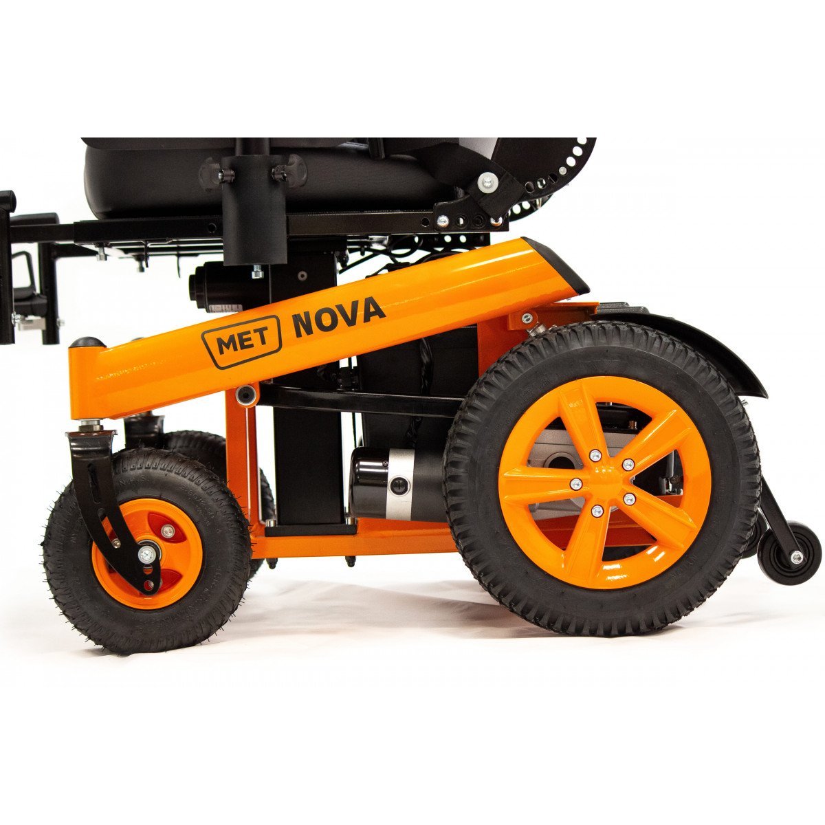 Электрическая кресло-коляска с лифтом Met Nova (Мет Нова) предлагает уникальную возможность поднимать сиденье вместе с пользователем с помощью электроактуатора. Она выполнена в строгом и элегантном классическом дизайне, отличается продуманной конструкцией и надежной функциональностью электрического оборудования. Рама кресла окрашена в яркий оранжевый цвет.