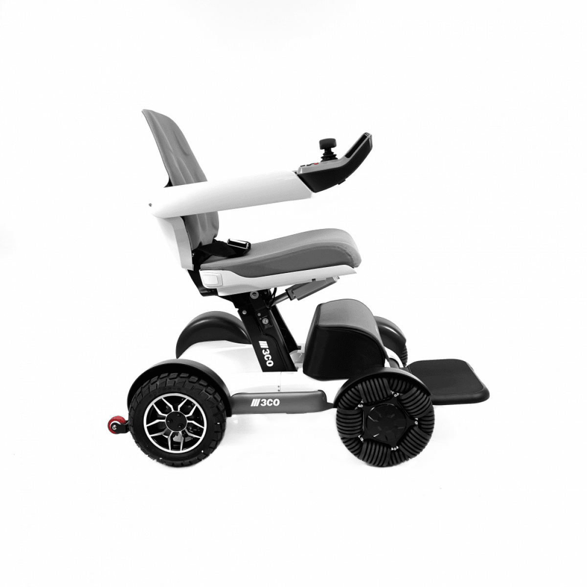 Рама выполнена из прочного алюминия с защитой от коррозии, что обеспечивает надёжность при ежедневной эксплуатации. В сложенном виде коляска занимает минимум места и помещается в багажник автомобиля. Управление осуществляется манипулятором, который можно установить под удобную руку, а через мобильное приложение доступны дополнительные функции контроля. В комплект входит зарядное устройство и всё необходимое для использования.