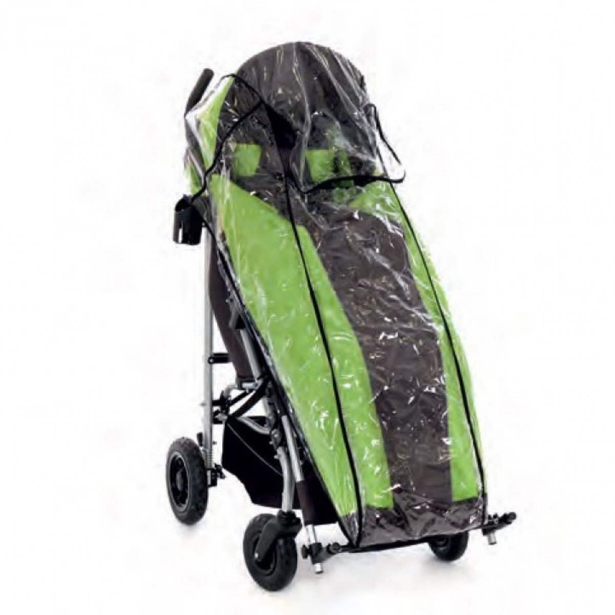 Капюшон закрывает от солнца и осадков, есть смотровое окно и карман для мелочей. В комплект можно добавить дождевик и накидку на ноги. Внешне коляска выглядит как обычная прогулочная модель, поэтому подходит для повседневной жизни без лишнего внимания.