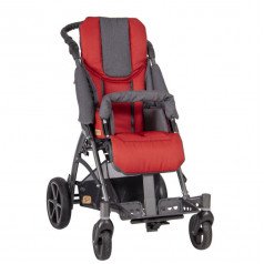 Кресло выпускается в двух размерах – стандарт и макси, благодаря чему можно подобрать наиболее подходящий вариант для каждого ребёнка. Литые колеса увеличенного диаметра (17,5 и 26,5 см.) позволяют легко использовать коляску на любой дороге без лишнего дискомфорта для ребёнка.