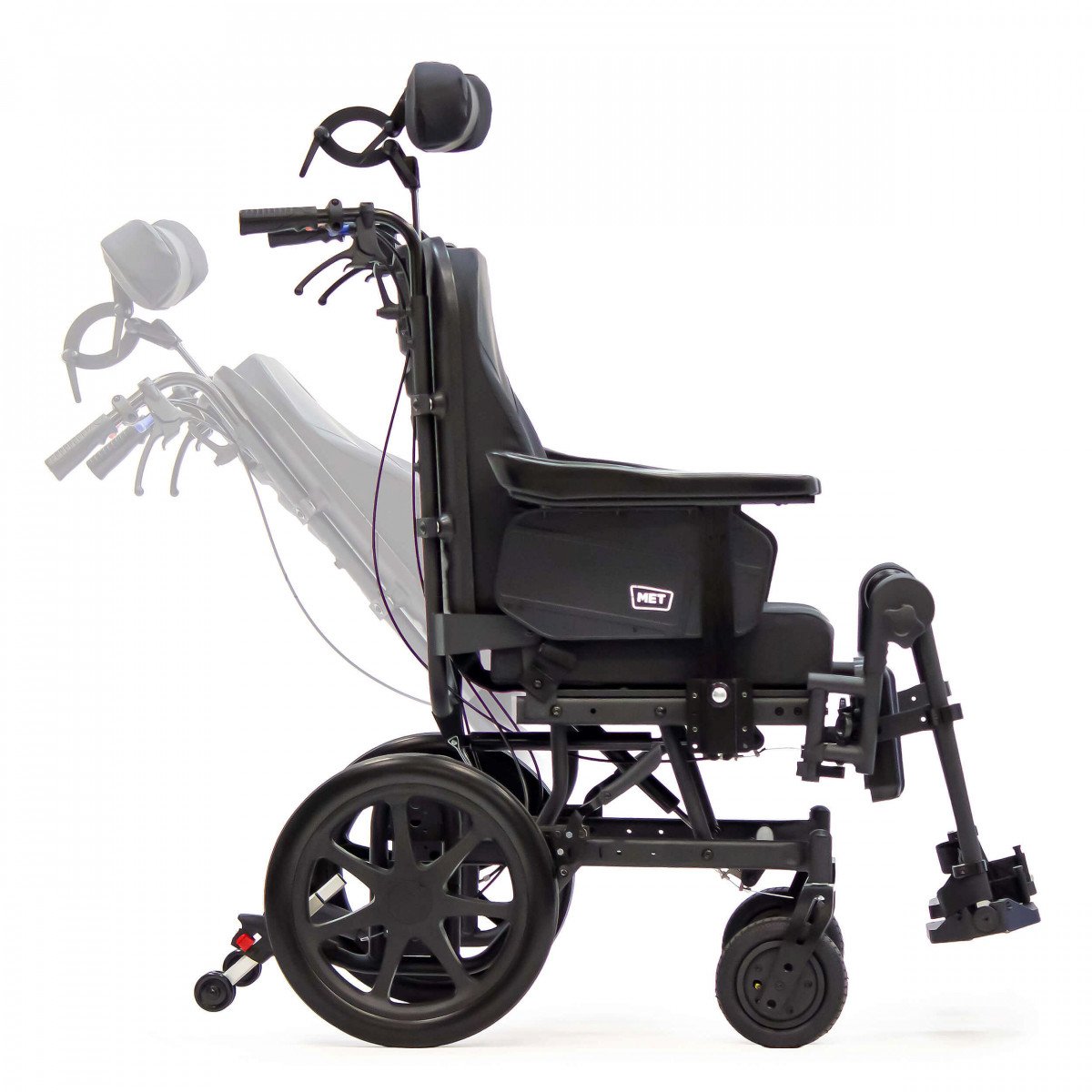 Met Eclipse B (Мет Эклипс Б) — кресло-каталка пассивного типа для перемещения с помощью сопровождающего, рассчитанная на нагрузку до 135 кг и подходящая как для дома, так и для улицы.