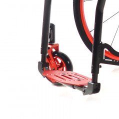 Передние колёса — цельнолитые, задние — быстросъёмные, доступны в вариантах с цельнолитыми или пневматическими шинами. Обода с антискользящим покрытием упрощают управление, а стояночные тормоза с регулировкой обеспечивают контроль при остановке. Для устойчивости предусмотрены антиопрокидыватели, а складные ручки с рельефными накладками делают управление для сопровождающего более удобным.