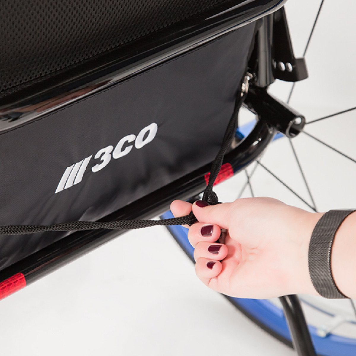 Модель продумана для комфорта в движении: передние колёса оснащены амортизаторами с регулировкой жёсткости, которые сглаживают неровности и снижают нагрузку на корпус. Спинка регулируется по углу наклона, а сиденье выполнено из прочной дышащей ткани, которая сохраняет форму при длительном использовании. Подлокотники съёмные и регулируются, что упрощает пересаживание и позволяет подъезжать ближе к столу. Подножка также настраивается по высоте.