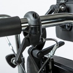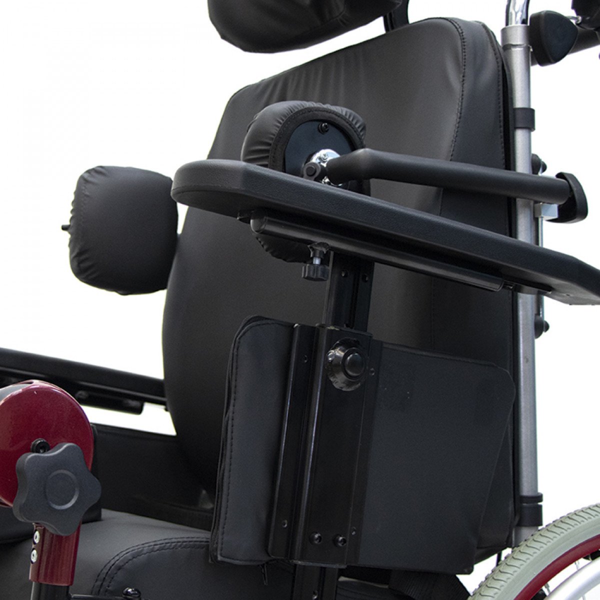 Коляска позволяет точно настроить посадку: спинка регулируется по высоте и углу наклона и оснащена боковыми фиксаторами для поддержки корпуса. Сиденье настраивается по высоте, глубине и наклону, а подлокотники регулируются и при необходимости снимаются для удобного пересаживания. Ручки для сопровождающего также регулируются по высоте, что делает управление комфортнее.