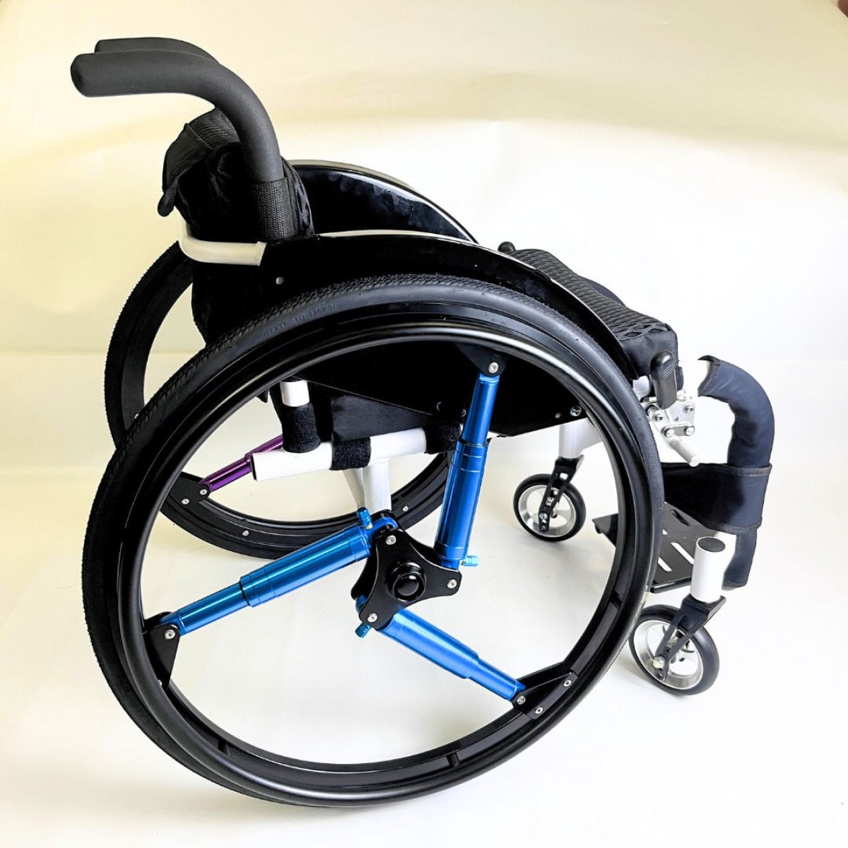 Внутри колёс скрыта инновационная система амортизации, способная поглощать до 50 % ударной нагрузки при заезде на бордюры, ступени и другие препятствия. При этом на ровной дороге колёса работают как обычные, без лишнего сопротивления. Особая конструкция с тремя амортизирующими элементами гасит вибрации внутри колеса, не передавая их на раму коляски.