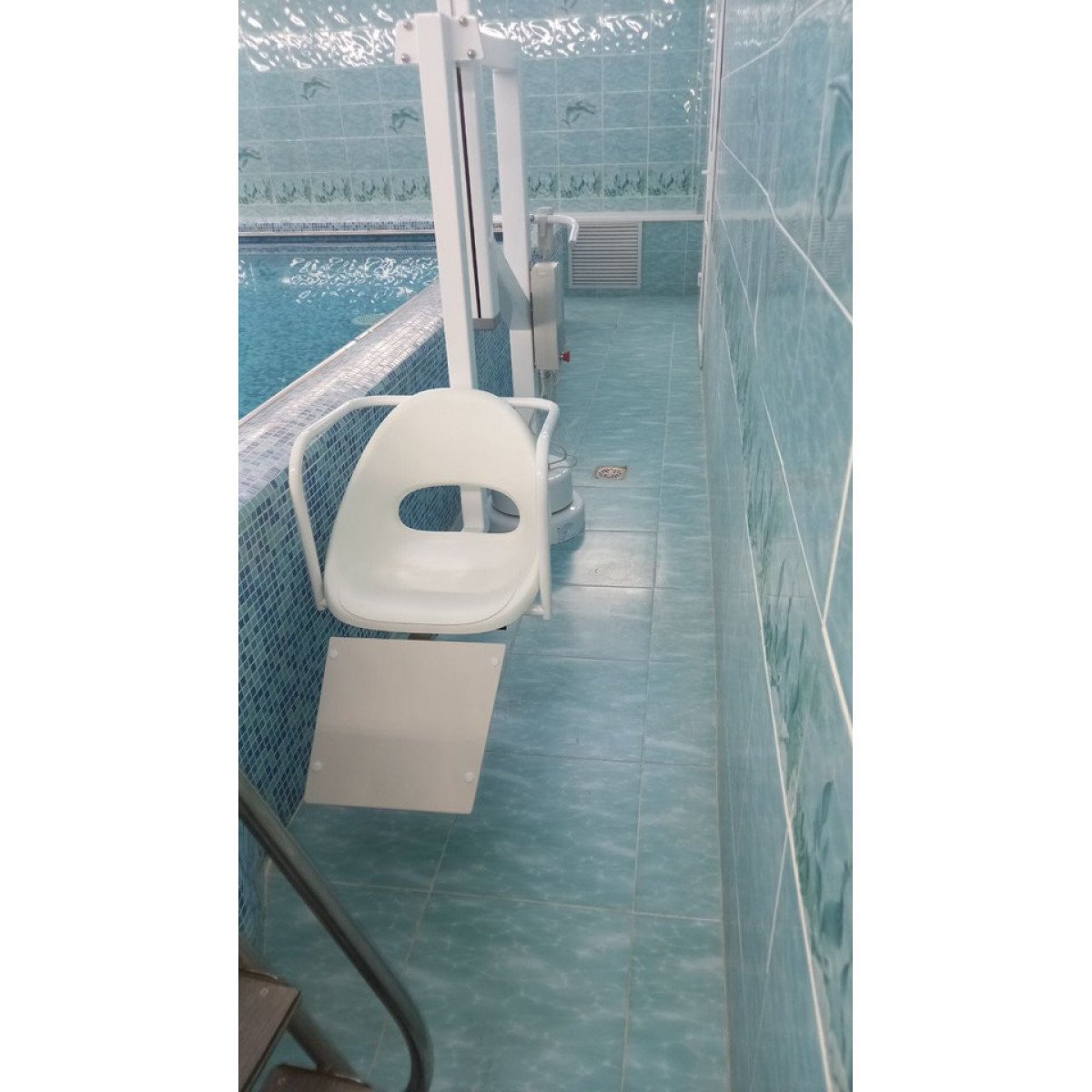 - Вертикальное движение подъёма экономит место у борта бассейна