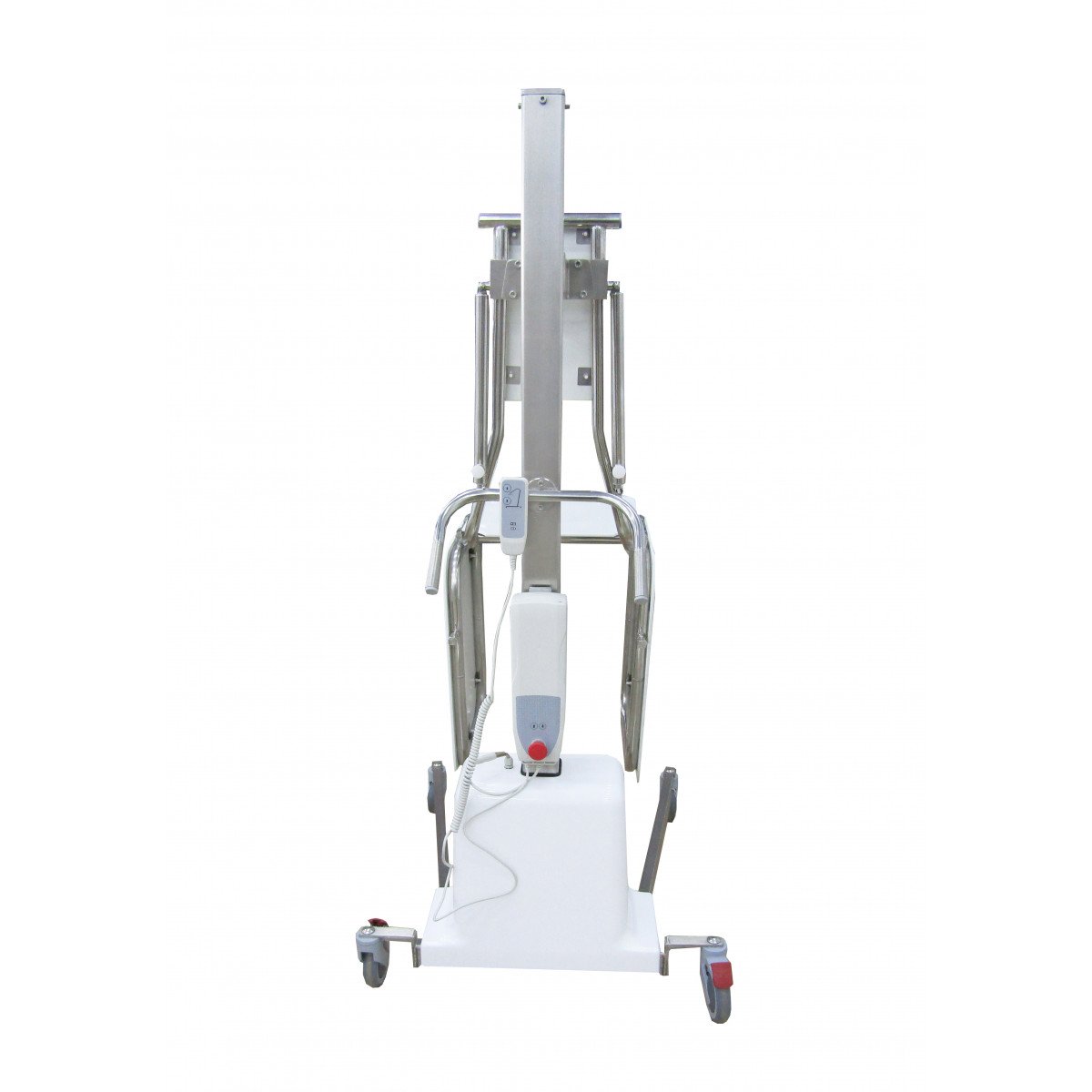 Конструкция выполнена на прочной металлической основе и оснащена подъёмным механизмом, который поднимает и опускает ложе нажатием одной кнопки. Трёхсекционная платформа регулируется по высоте и углу наклона, что помогает выбрать удобное положение для каждого пациента. Благодаря компактным размерам и маневренным колёсам подъёмник легко перемещается между помещениями, не занимая много места.