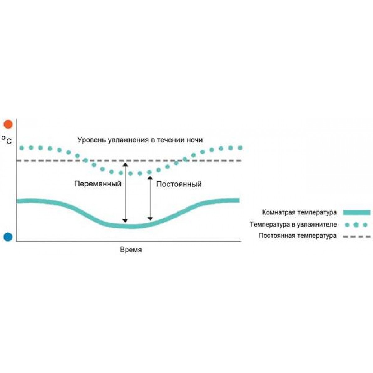 Встроенный нагреваемый увлажнитель оснащён системой Advanced Humid Control, которая контролирует температуру и влажность воздуха в реальном времени. Это помогает избежать пересыхания дыхательных путей и образования конденсата в контуре, даже при изменении температуры в комнате. Пользователь может выбрать один из десяти уровней увлажнения, чтобы подобрать наиболее комфортные условия для сна.