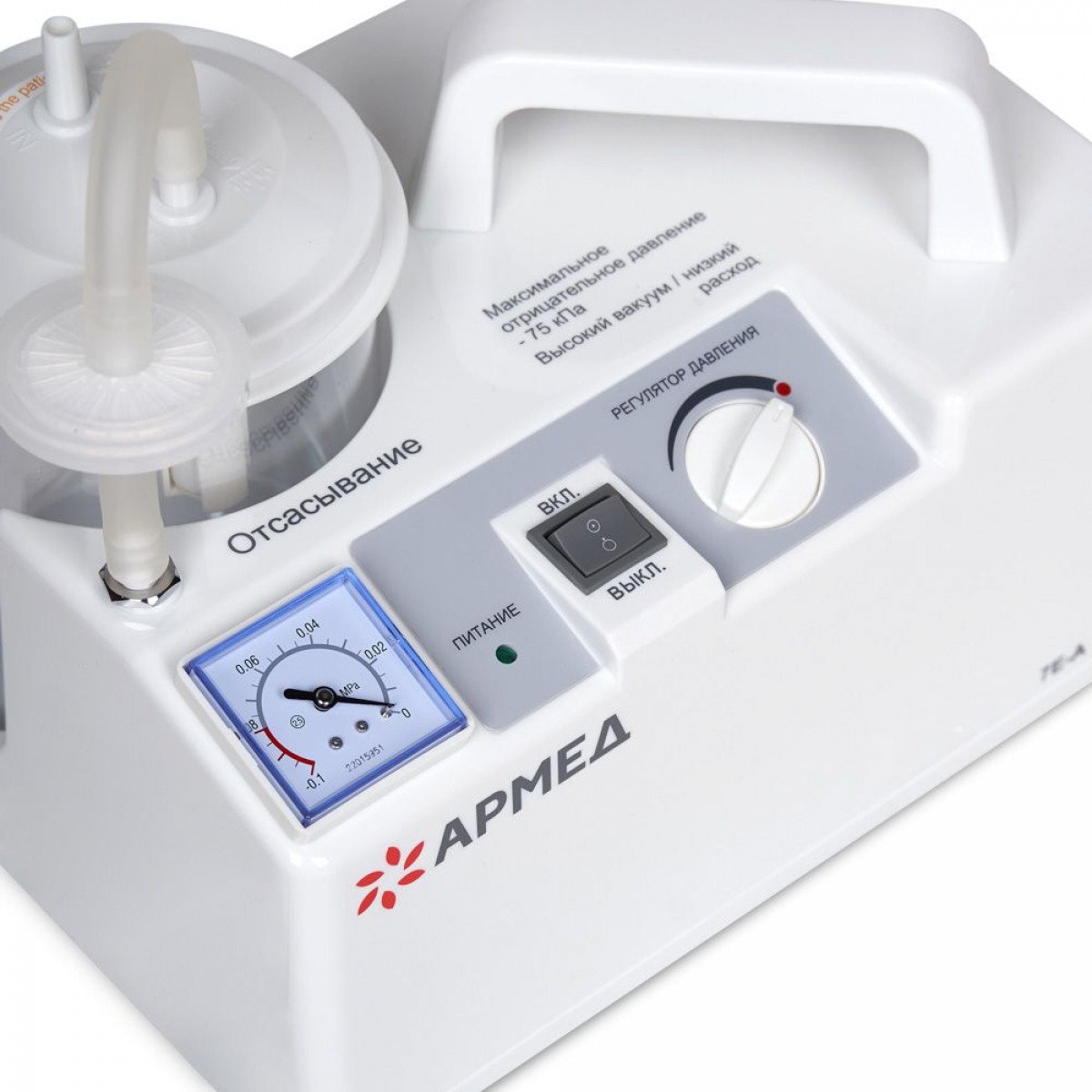 Хирургический электрический отсасыватель Armed 7E-А (Армед 7И-Эй) — надёжный и компактный аппарат, предназначенный для удаления крови, гноя, жидкостей и газов из операционных ран и полостей во время и после хирургических вмешательств. Прибор широко применяется в перевязочных и операционных кабинетах, обеспечивая стабильное высокое отрицательное давление и эффективную аспирацию. Благодаря небольшому весу, удобной ручке и компактным габаритам устройство легко переносится и не занимает много места.