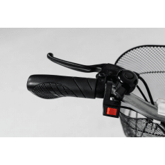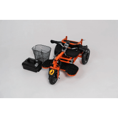 Управление интуитивно понятное: на рулевой колонке расположены дисплей и кнопки, поворотное кольцо для контроля движения, переключение направления вперёд и назад, а также рычаг дискового тормоза. Мотор-колесо обеспечивает уверенное движение, а задние колёса добавляют устойчивости. Все элементы конструкции продуманы так, чтобы скутером было удобно пользоваться каждый день — без лишних усилий и сложных настроек.