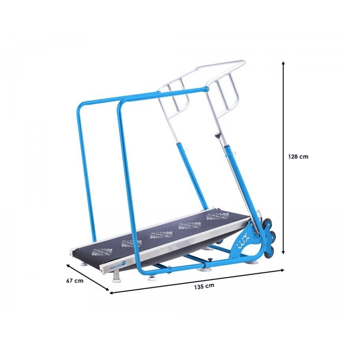 Дорожка проста в использовании: уровень нагрузки меняется за счёт регулировки натяжения полотна. Система складывания Easy Push позволяет быстро привести тренажёр в рабочее положение и компактно убрать его после занятия. Съёмные поручни обеспечивают дополнительную опору и безопасность, особенно для пожилых и ослабленных пользователей. Подходит для регулярного применения в частных и общественных бассейнах.