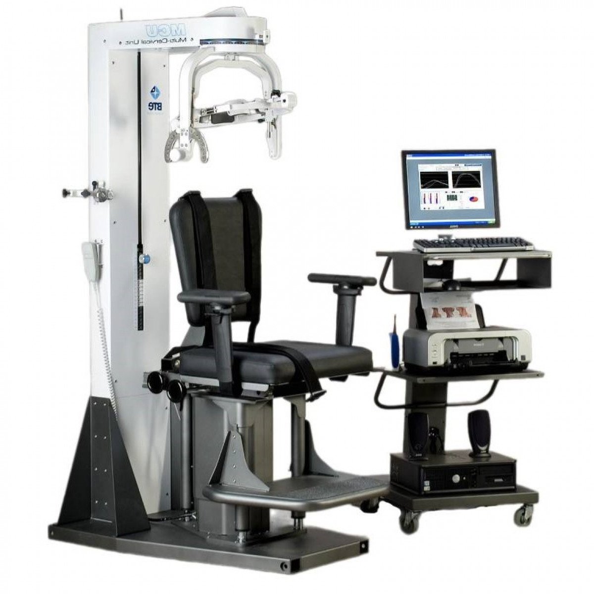 Основное преимущество комплекса — использование компьютеризированного интерфейса, который исключает субъективность и неточности в тестировании. Оборудование записывает движения и силу шеи во всех трёх плоскостях, а также позволяет производить динамическую терапию для ускоренной реабилитации. Комплекс MCU включает в себя рабочую станцию с монитором, принтером и компьютером, а также специализированные компоненты, такие как кресло для пациента, фиксатор головы и регулируемый набор грузов, что позволяет гибко адаптировать оборудование под потребности каждого пациента.